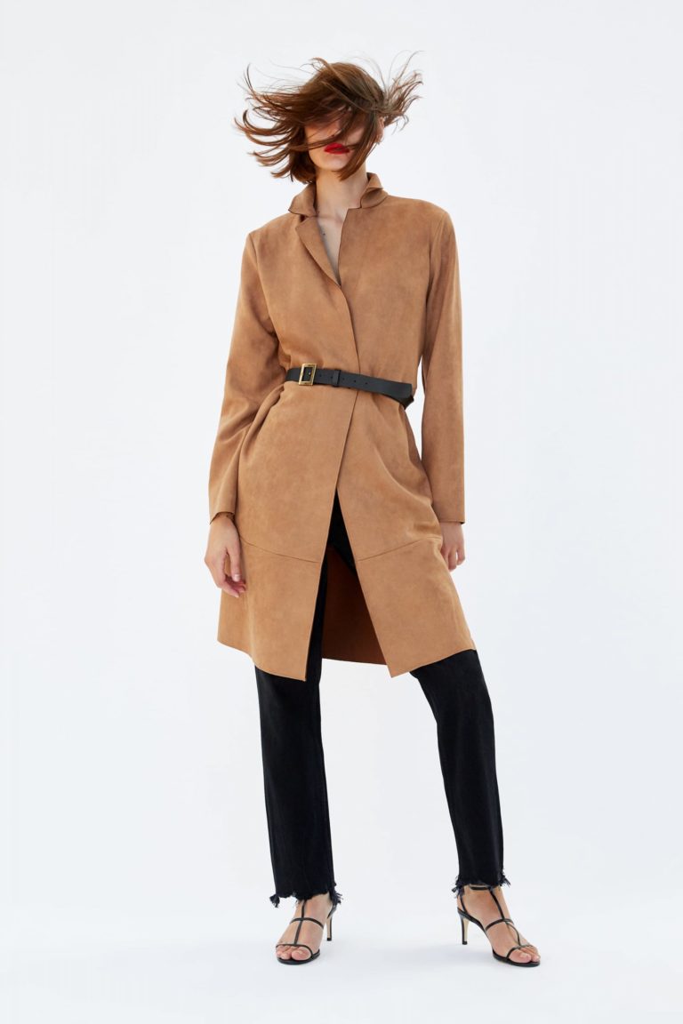 - ₪40.00Coat with a collar with flaps. Long Sleeve. Indoor pockets on the seam line on the sides. Fastening to the indoor latch at the front. Height of model: 178