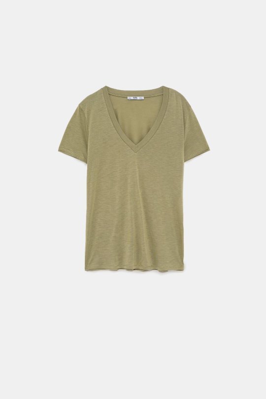 Loose-fitting T-shirt with a V-neckline and short sleeves. Fits plerfectly basic pants and skirts. Care for fiber: TENCEL™ Lyocell.